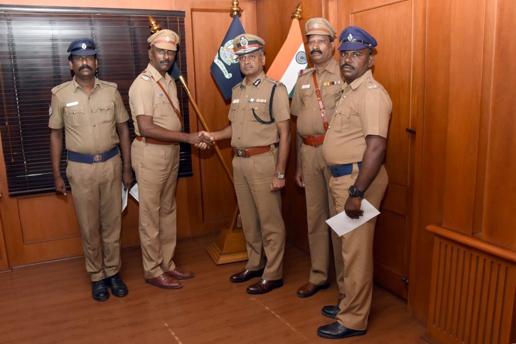 உடலில் மண்ணெண்ணெய் ஊற்றி தீக்குளிக்க முயற்சி செய்த நபரை காப்பாற்றிய S-4, நந்தம்பாக்கம் காவல் ஆய்வாளர் எம்.தங்கராஜ், உதவி ஆய்வாளர் டிக்பால், காவலர்கள் செந்தில்குமார் மற்றும் சுப்ரமணி ஆகியோரை 5ம் தேதி சென்னை மாநகர காவல் ஆணையர் திரு.விசுவநாதன் அவர்கள் நேரில் அழைத்து பாராட்டி வெகுமதி வழங்கினார்..