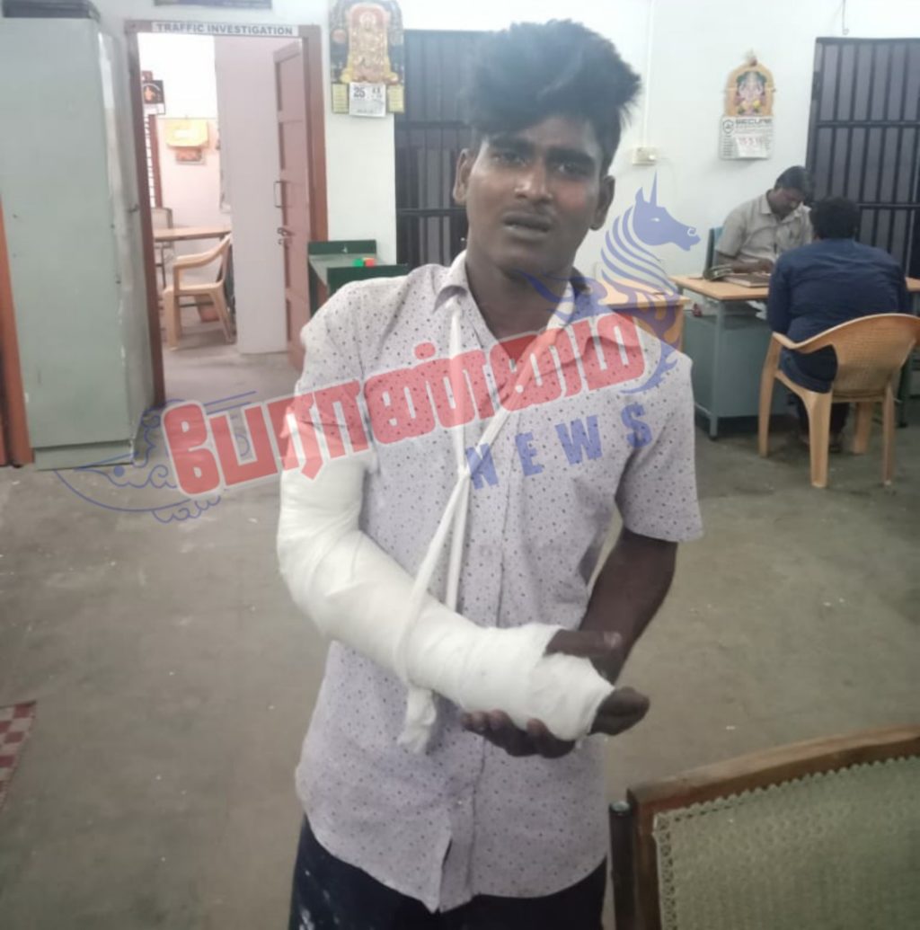 நேற்று நள்ளிரவு 1:30 மணி அளவில் மார்க்கெட்டில் தூங்கிக்கொண்டிருந்த கூலி தொழிலாளி முருகனை எழுப்பி கழுத்தில் கத்தியை வைத்து ஒரு செல்போன் மற்றும் பாக்கெட்டில் இருந்த 300 ரூபாய் பணத்தை எடுத்துக்கொண்டு போலீசிடம் சொன்னால் உன்னை கொலை செய்து விடுவேன் என்று மிரட்டி விட்டு தப்பி சென்றான்.