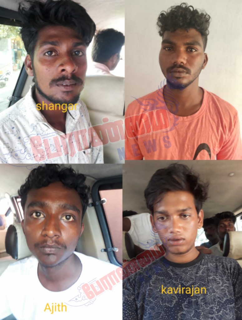 கைது செய்த நாலு பேரிடம் விசாரணை செய்ததில் அரும்பாக்கம் சேர்ந்த சங்கர் வயது 29, அரும்பாக்கம் சேர்ந்த அஜித் வயது 24, கோயம்பேடு சேர்ந்த பாபு பைக் 24, கோயம்பேடு சேர்ந்த கவிராஜ் வயது 24.