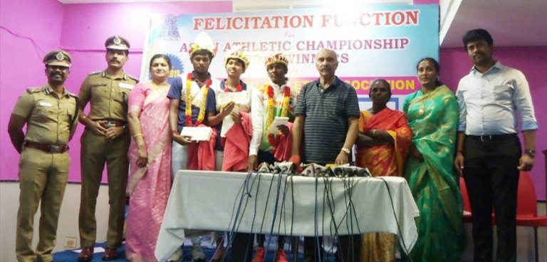 அது மட்டுமில்லாமல் தமிழ்நாடு தடகள சங்கம் சார்பில் மூவருக்கும் தங்க நாணயம் பரிசாக வழங்கப்பட்டது.