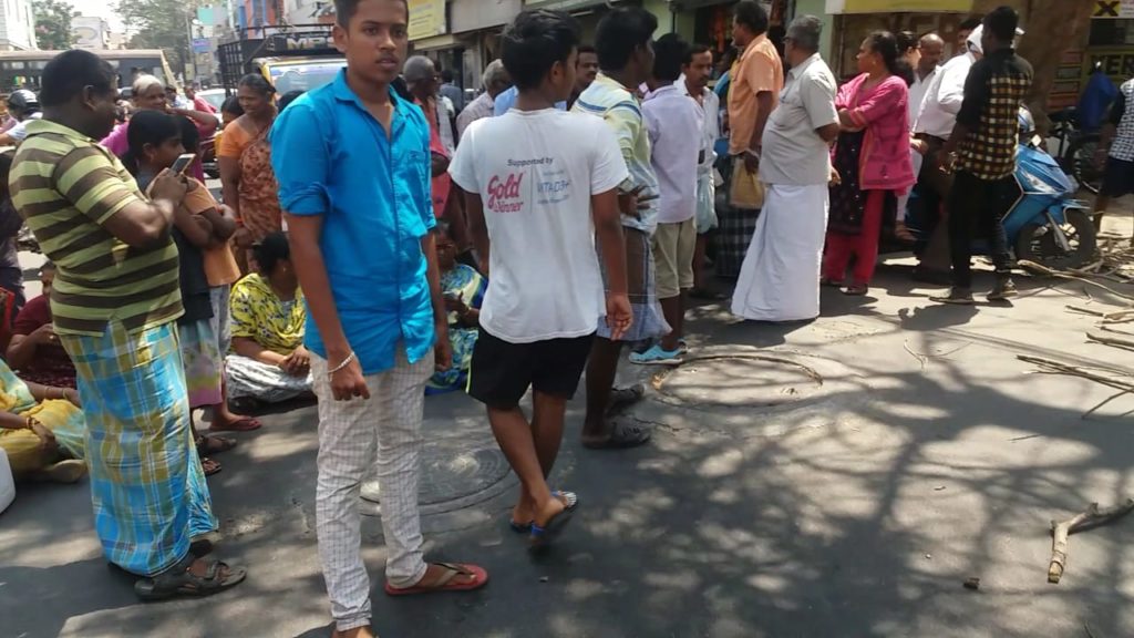 இது குறித்து சைதாப்பேட்டை டாடாநகர் உள்ள மின்சாரம் அலுவலத்தில் அப்பகுதி மக்கள் பலமுறை புகார் சொல்லியும் வராததால் அப்பகுதி பொதுமக்கள் இரண்டு மணி நேரமாக சைதாப்பேட்டை, கோடம்பாக்க ரோடு மற்றும் 8விசாக தோட்டம் சந்திப்பில் சாலை சாலை மறியலில் ஈடுபட்டதால் போக்குவரத்து பாதிப்பு சம்பவ இடத்திற்கு விரைந்து வந்த குமரன், நகர் காவல் ஆய்வாளர் வெங்கடேசன் அப்பகுதி மக்களிடம் பேச்சு வார்த்தையில் ஈடுபட்டார். உடனே மின்சாரம் அலுவலகத்தில் இருந்து AD செல்வகுமார் சம்பவ இடத்துக்கு வந்து சாலை மறியலில் ஈடுபட்ட பொதுமக்களிடம் பேச்சு வார்த்தை நடத்தி சமாதானம் செய்த பின்பு அப்பகுதி மக்கள் சாலை மறியலை கைவிட்டனர்…
