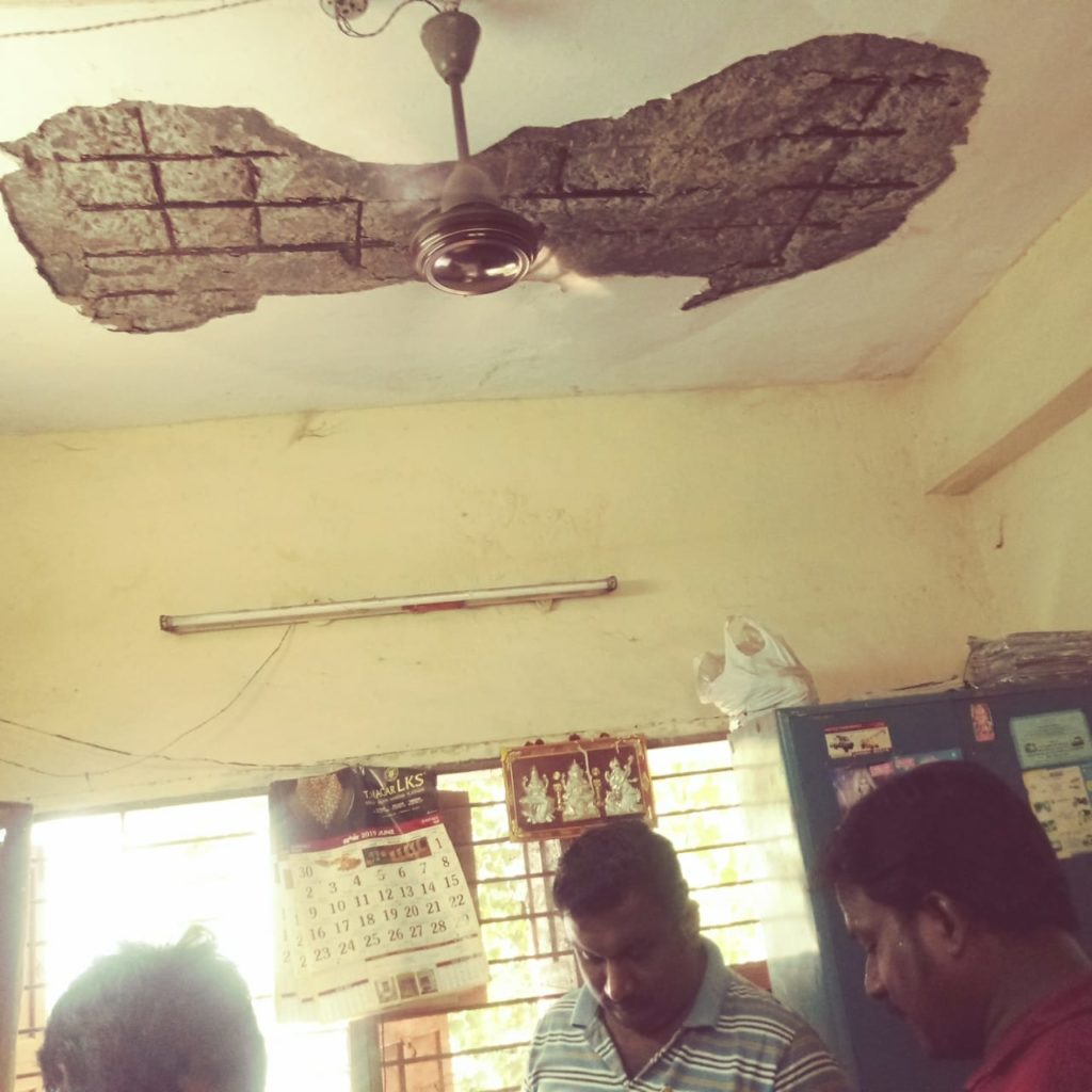 போக்குவரத்து புலனாய்வு பிரிவு போலீஸ் நிலையத்தில் அடிக்கடி மேற்கூரையின் சிமெண்ட் உடைந்து… அங்கு பணியில் இருக்கும் போலீசார் மற்றும் புகார் கொடுக்க வரும் பொதுமக்களின் தலையின்மேல் விழுவதால் அவர்கள் காயம் அடையும் சூழல் ஏற்பட்டுள்ளது. மேலும் பல இடங்களில் மேற்கூரைகள் சிமெண்ட் உடைந்து விழுந்து கம்பிகள் வெளியே தெரியும் அளவுக்கு உள்ளது.