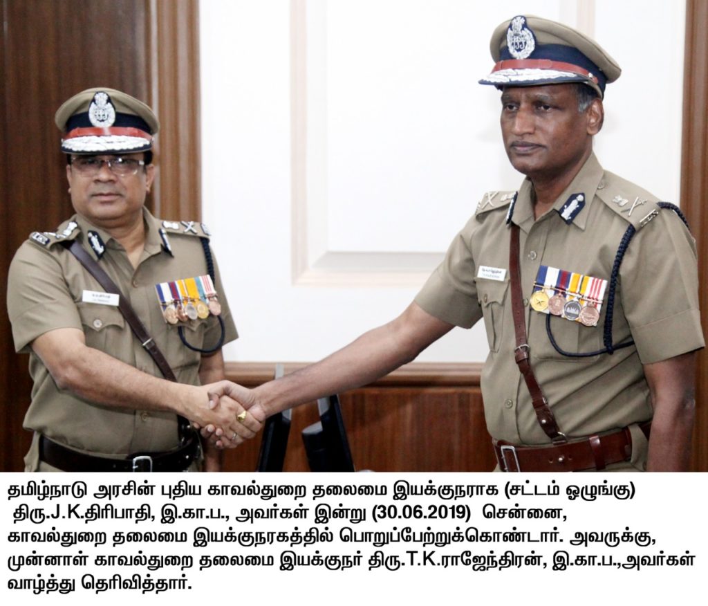 29-வது சட்டம் ஒழுங்கு டிஜிபியாகவும், காவல் துறை தலைவராகவும் | ஜே.கே திரிபாதி இன்று பதவி ஏற்றுக்கொண்டார் |
