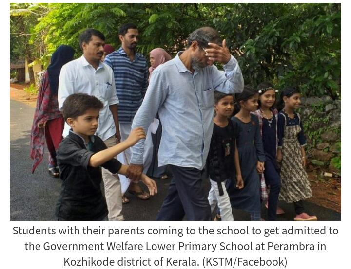 தங்கள் பள்ளியில் இணைந்த முஸ்லிம் சிறுவர்களை ஆனந்தத்தோடு பாடல்களை பாடி வரவேற்று அசத்தி இருக்கிறார்கள் தலித் மாணாக்கர்கள். முஸ்லிம் பெற்றோர்களின் தீர்க்கமான முடிவையும் அதற்கு வழிவகுத்த கேரளா மாநில ஆசிரியர்கள் சங்க(KSTM) நிர்வாகிகளையும் பள்ளி நிர்வாகிகளும் தலித் சிறுவர்களுடைய பெற்றோர்களும் மனமார பாராட்டி இருக்கின்றனர்.
