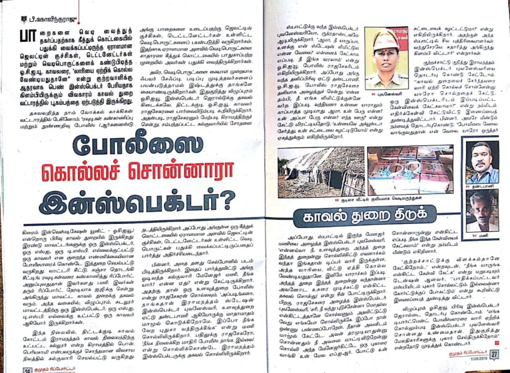 இவரை போன்ற ஆய்வாளரை பணியிட மாற்றம் செய்யப்படுவதை விட… காவல்துறையை விட்டே நிரந்தரமாக நீக்கினால்.. அடுத்த ஆய்வாளர் விஜயலட்சுமியை போல் (சென்னை கோட்டூர்புரம் காவல் நிலைய பழைய ஆய்வாளர்) இன்னொரு பெண் காவல் துறை அதிகாரி உருவாகாமல் தடுக்கலாம் என்பது அப்பகுதி மக்களின் கருத்து மற்றும் கோரிக்கையாகும்.