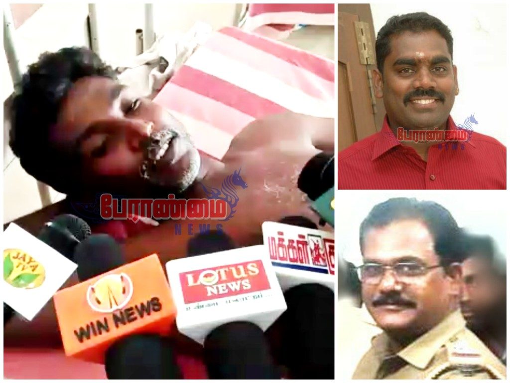 மேலும் பால்ராஜ் மற்றும் ராமு ஆகிய இரு டிரைவர்களையும் அடித்து காவல்துறை வாகனத்தில் ஏற்றிக் கொண்டு அன்னவாசல் காவல் நிலையத்திற்கு அழைத்து சென்று… அங்கு வைத்து இருவரையும் சரமாரியாக தாக்கியதும் இல்லாமல், உங்களது செங்கல் சூளை உரிமையாளர் ஐயப்பன் என்பவரை ஒரு லட்சம் ரூபாயை எடுத்து வர சொல்லு… பணம் எடுத்து வரும் வரை உங்களை தான் அடிப்பேன் என்று தொடர்ந்து தாக்கி உள்ளார். ஆய்வாளர் செந்தில்குமார் தாக்கியதில் இருவரும் மயக்கமடைந்த நிலையில் இருந்துள்ளனர்.