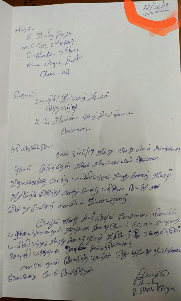 ஆனால் பேசியபடி இதுவரைக்கும் காரின் சேதமான பாகங்களுக்கு உண்டான பணத்தை வாங்கி தரவில்லை என்றும் தினமும் காவல் நிலையம் சென்று கேட்ட கார் உரிமையாளரிடம் உதவி ஆய்வாளர் பெனாசீர்பேகம் இனி என்னால் எந்த நடவடிக்கை எடுக்க முடியாது என்று கூறி புகார் அளித்து 48- நாட்கள் கழித்து இன்று 26/07 காலை CSR வழங்கியுள்ளார். இதனால் மனமுடைந்த நான் தற்கொலை செய்து கொள்ளும் அளவுக்கு மன உளைச்சலில் உள்ளானதாகவும், எனக்கு பணம் வேண்டாம் என்றும் அவர்கள் இருவர் மீதும், கட்ட பஞ்சாயத்தில் ஈடுபடும் உதவி ஆய்வாளர் பெனாசீர்பேகம் மீதும் நடவடிக்கை எடுக்க வேண்டும் என உயர் அதிகாரிகளிடம் புகார் அளிக்க உள்ளதாகவும் ஷெர்லி பிரியா தெரிவிக்கின்றார்..