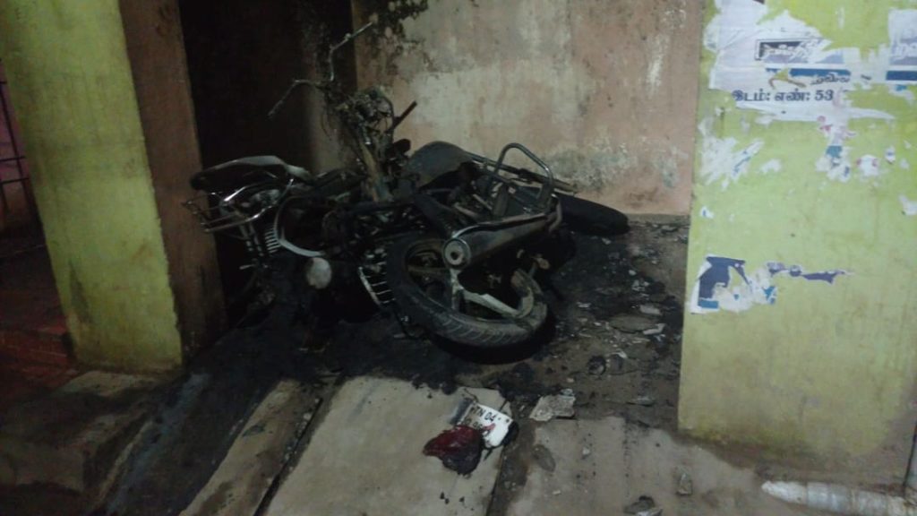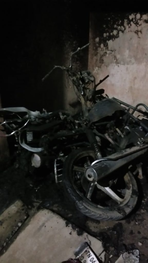 ரமேஷ் (34) என்பவரின் இருசக்கர வாகனமும் எரிந்து நாசமாகியிருந்ததால்.