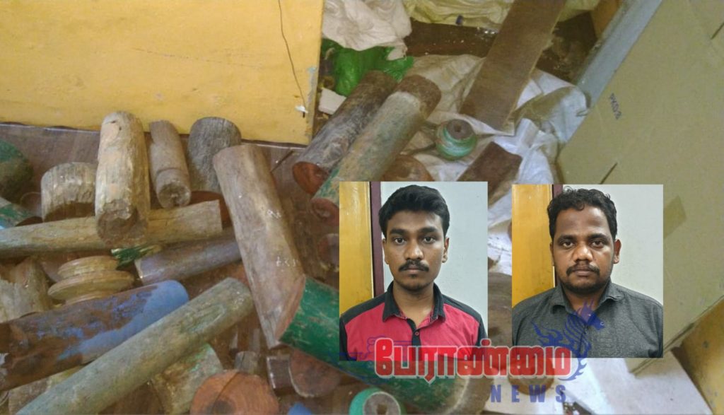 மரக்கடையில் 10 லட்சம் மதிப்புள்ள செம்மரக் கட்டை பறிமுதல் இருவர் கைது.