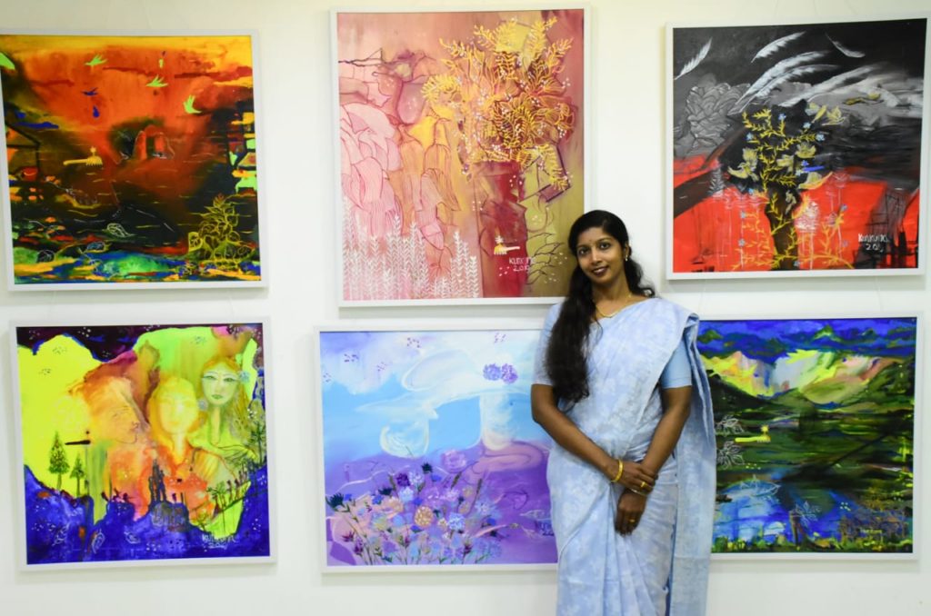 “என்னதான் நான் எனது பட்டபடிப்பை முடித்திருந்தாலும் எனது விருப்பம் கலை – வண்ணம் போன்றதிலே எனது ஈர்ப்பு மற்றும் கவனம் சென்றது என்றும் முதன் முதலில் சித்திர பாடத்தில் துவங்கிய நான் தற்போது அக்ரிலிக் இல் ஓவியங்கள் எனது பயணம் ஆகும் என்றும் இதில் முழுதாக தேர்ச்சி பெற எண்ணி நான் பல பட்டறைகள் சென்றேன் எனவும் இத்துறையில் பல கலை வள்ளுநர்களை சந்தித்து பல ஆலோசனை மற்றும் அறிவுரைகளை பகிர்ந்து கொண்டதாகவும் நெடும் பயணத்திற்கு பின் தற்போது நான் இங்கு நிற்கிறேன் என தெரிவித்த குங்கும திவ்யா, எனது ஓவியங்களின் கை பக்குவத்திலேயே நான் கடந்து வந்த பாதையை நீங்கள் அனைவரும் உணரலாம் என தெரிவித்த அவர் இயற்கையே எனது தாய், தந்தையாக நான் உணருகிறேன் என்றும் எனது தந்தை, தாய் வம்சாவழியே விவசாயிகளே காரணம் எனவும் எனது தந்தை மிகவும் பாரம்பரியம் மிக்கவர் அதனால் அவர் என்னிடம் சிறு வயதில் இருந்தே நம் நாட்டு பாரம்பரியத்தை பற்றியும் கோவில் கலைகள் பற்றியும் என்னிடம் அதிகம் கூறுவார் என அவர் தெரிவித்தார்…