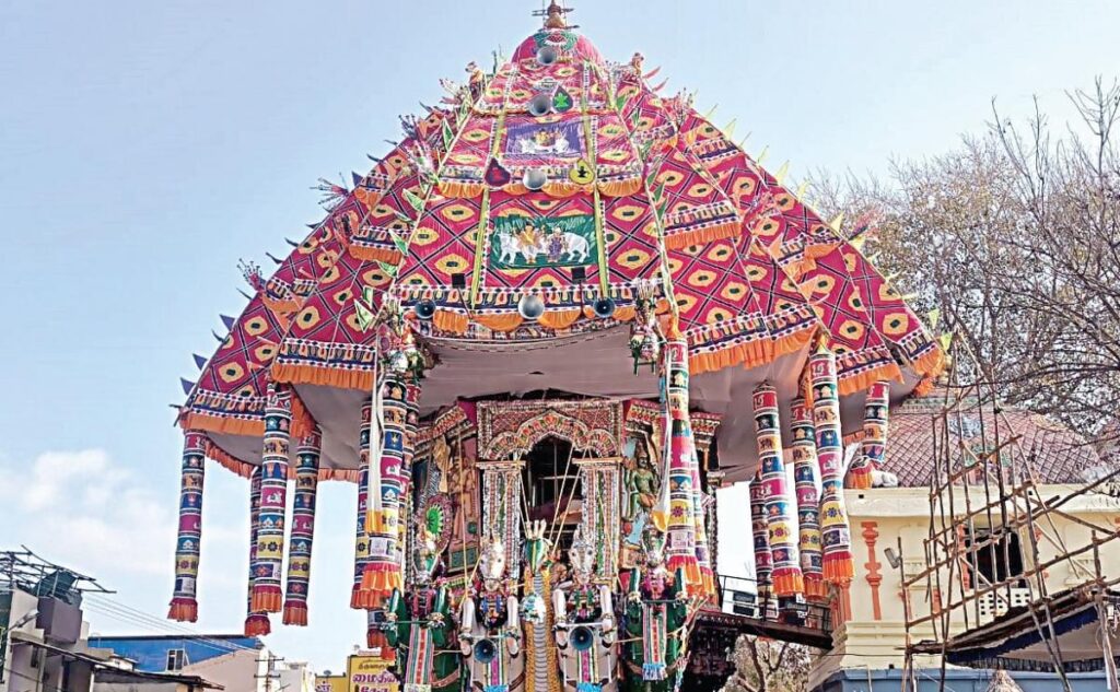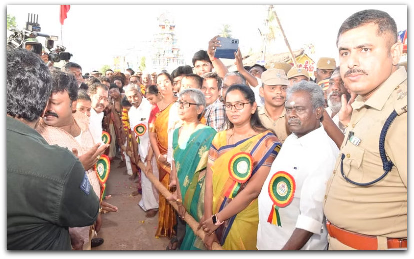 சென்னை வள்ளுவர் கோட்டத்தின் மாதிரியை கொண்டு வடிவமைக்கப்பட்ட திருவாரூர் ஆழித்தேர் வலம்வரும் அழகை தொலைக்காட்சி நேரலை மூலமாக லட்சக்கணக்கானோர் கண்டுகளித்து வருகின்றனர்.
