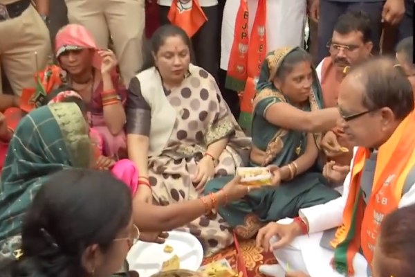 மத்தியப் பிரதேச முதல்வர் சிவராஜ் சிங் சவுகான், புர்ஹான்பூரில் பாஜக பெண் தொண்டர்களுடன் மதிய உணவு சாப்பிட்டார்.